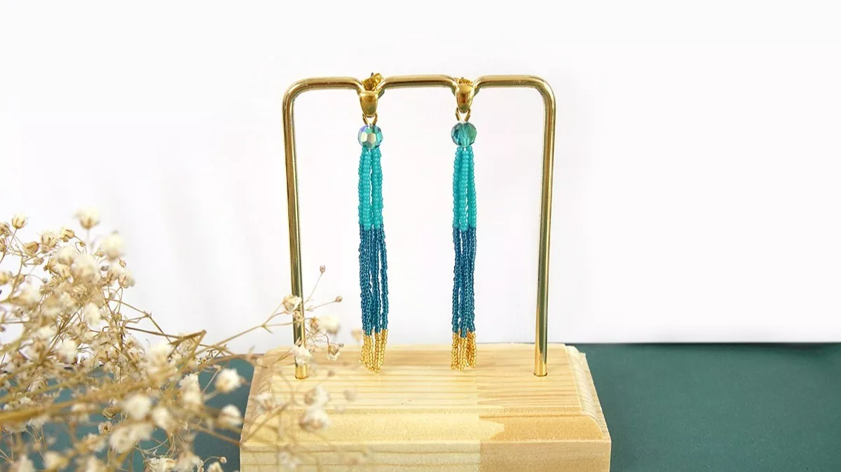Couper 1 m de fil à coudre. Enfilez le fil sur une aiguille. Enfilez une perle de rocaille dorée et fixez-la en guise de perle de maintien à 20 cm du bout du fil. Pour cela, repassez deux fois dans le trou de la perle avec l'aiguille. Une perle de maintien sert à empêcher les perles de glisser lorsqu'on les enfile.