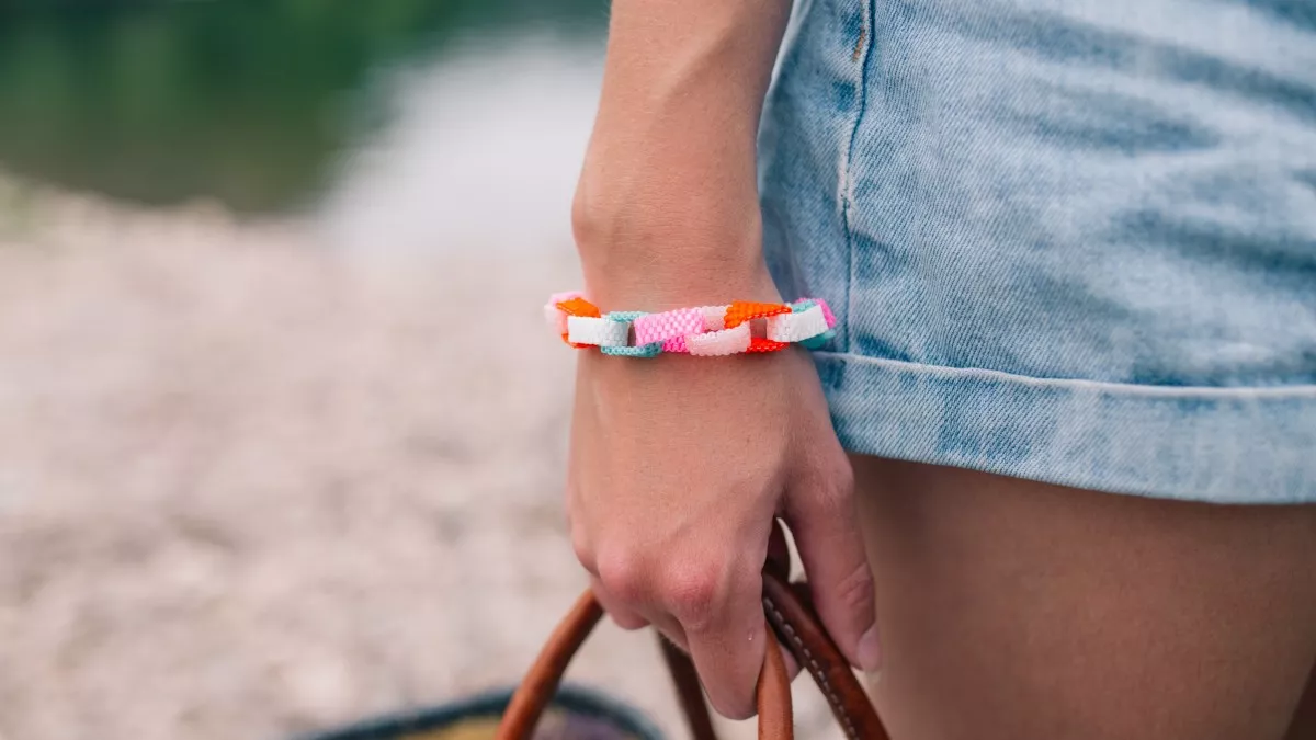 Notre modèle est composé de 16 anneaux, mais le nombre d'anneaux nécessaire dépendra de votre tour de poignet. Testez le bracelet sur votre poignet au fur et à mesure pour déterminer la longueur la plus adaptée. Ne faites pas de bracelet trop près du poignet, car il vous faut de la marge pour pouvoir le fermer facilement.