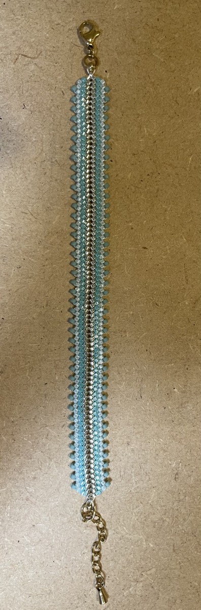 Découvrez ce nouveau tutoriel de notre partenaire créatrice Sophie alias Elyconia, pour apprendre à réaliser un beau bracelet épi tissé dans les tons subtils de bleus glacés et argenté. Ce bracelet tissé en perles est réalisé en utilisant la technique du peyote chevron. Nous vous guiderons pas à pas dans chaque étape afin de vous fournir des explications détaillées et vous apprendre à tisser cette forme originale et exclusive.