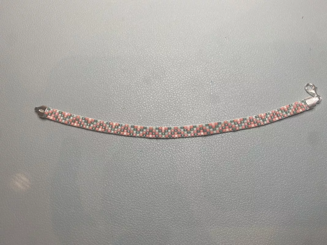 Montez 5 fils sur le métier à tisser. Ici nous avons utilisé du fil Miyuki mais vous pouvez utiliser d'autres fils de tissage. Si vous utilisez le métier à tisser de la photo, basculez le clou du rondin où vous avez attaché le premier fil à l'horizontale et l'autre presque à la verticale. Cela permet de gagner quelques centimètres de longueur sur le métier à tisser pour faire des bracelets plus longs. Prenez le fil sur la bobine et tirez-le jusqu'à avoir une longueur égale à l'amplitude de vos bras. Une fois plié en deux dans l'aiguille cette longueur permet d'avoir une bonne aisance de tissage.