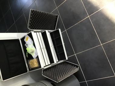 Malette à roulette, en aluminium et revêtement synthétique imitation cuir noir, pour transporter toutes vos créations !
